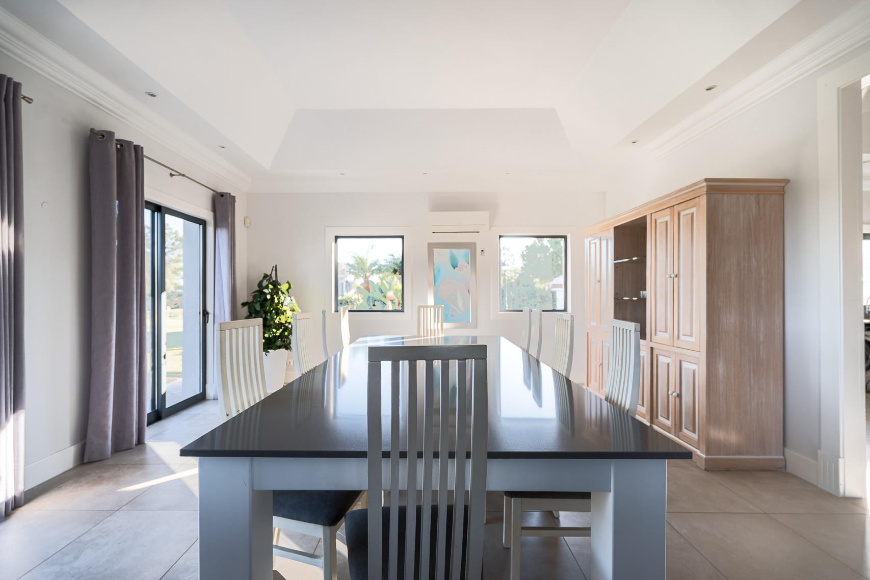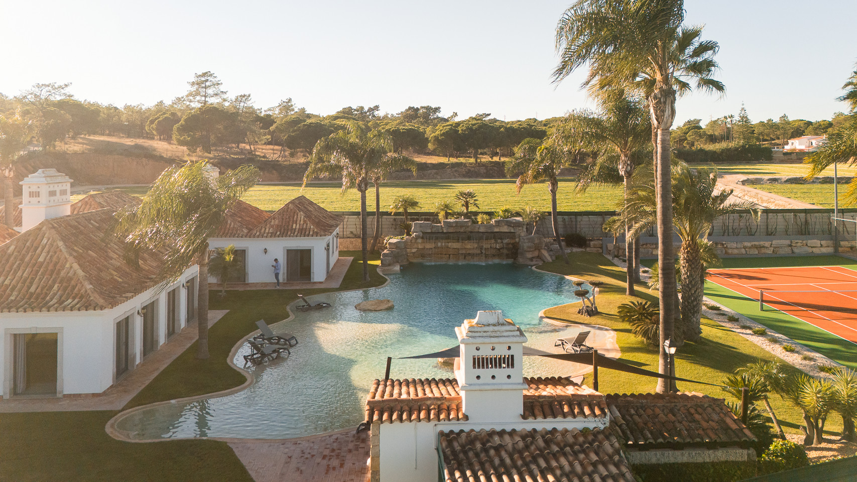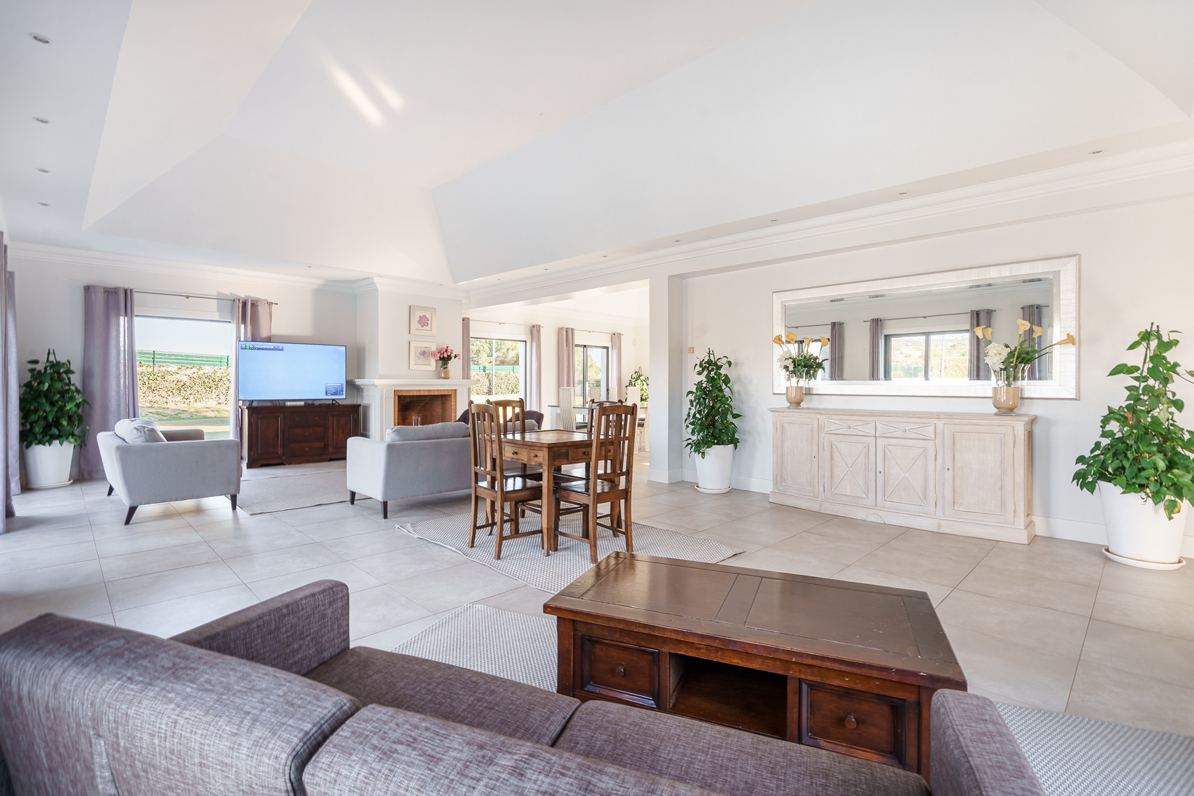 A villa em Quinta do Lago tem 4 quarto(s) e capacidade para 10 pessoa(s). Alojamento de 4.000 m². Dispõe de jardim, mobiliário de jardim, parcela vedada, terraço, máquina de lavar roupa, máquina de secar roupa, churrasqueira, lareira, ferro de engomar, acesso internet (wifi), secador de cabelo, varanda, campo de ténis, alarme, aquecimento central, ar-condicionado, piscina privada, piscina climatizada privada, estacionamento ao ar livre no mesmo edifício, Televisão, tv satélite (Línguas: Espanhol, Inglês). A kitchenette, de vitrocerâmica, está equipada com frigorífico, microondas, forno, congelador, máquina de lavar louça, louça/talheres, utensílios/cozinha, máquina de café, fritadeira e torradeira.
