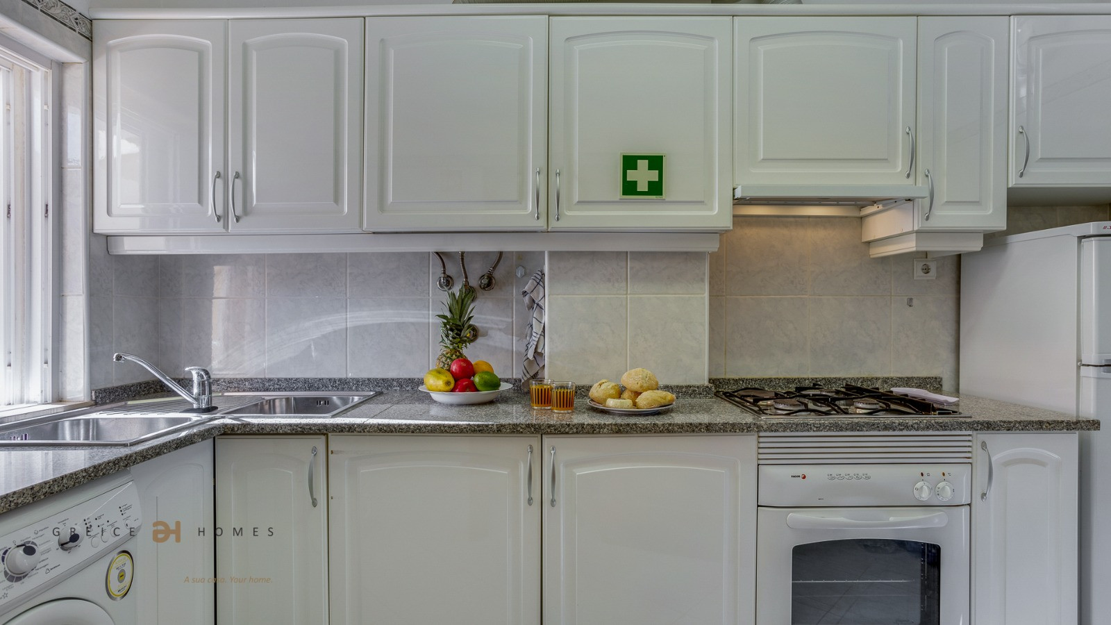 The fully equipped kitchen with fridge, washing machine, oven, microwave, coffee machine, toaster, kettle and various kitchen utensils. Equipped with air conditioning, television with multiple international channels and Wi-Fi internet.