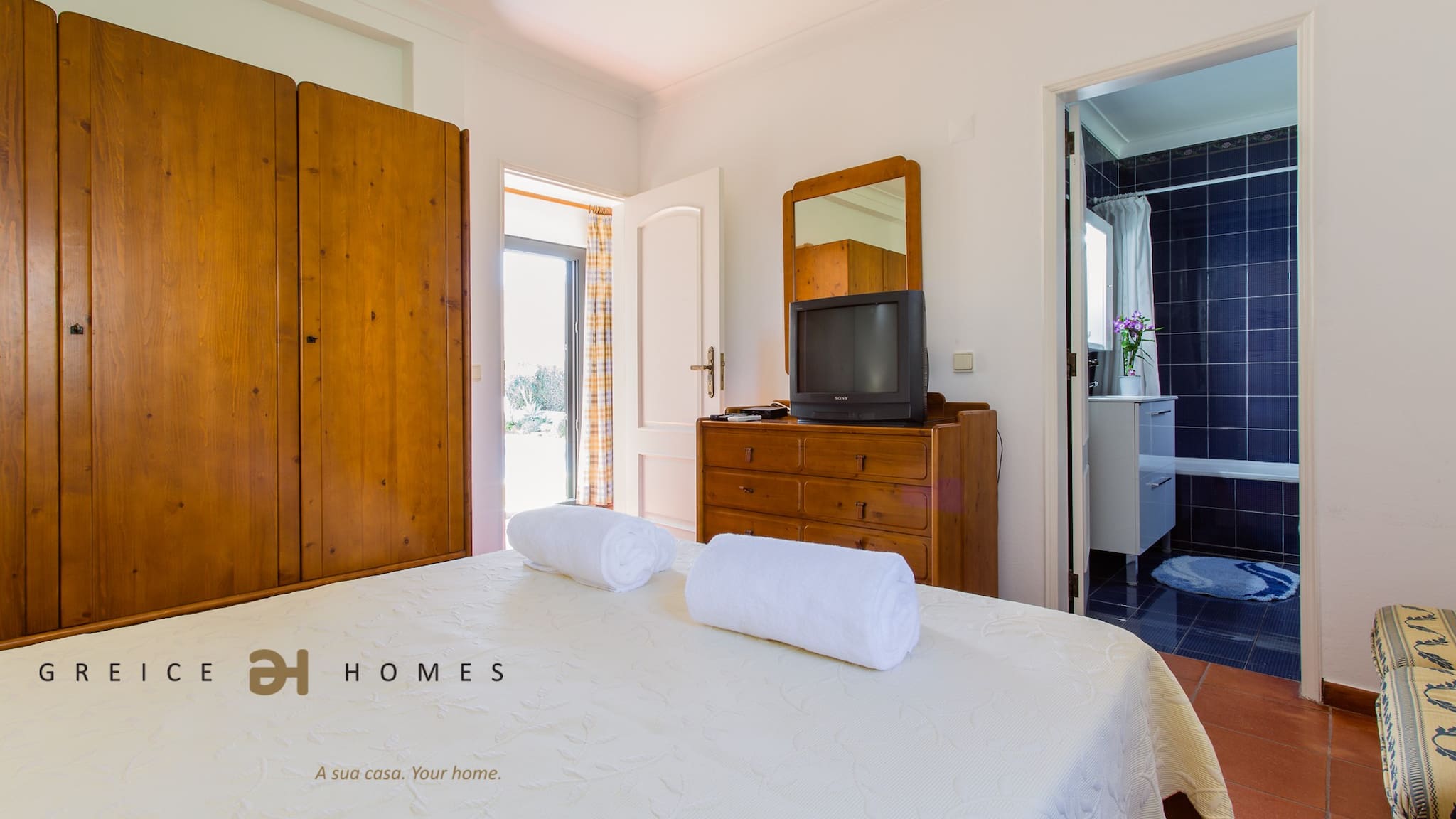 You can also find a double bedroom with closet and window with exit to the swimming pool, a social bathroom with bathtub and a bedroom en-suite with wardrobe, bath and Tv.