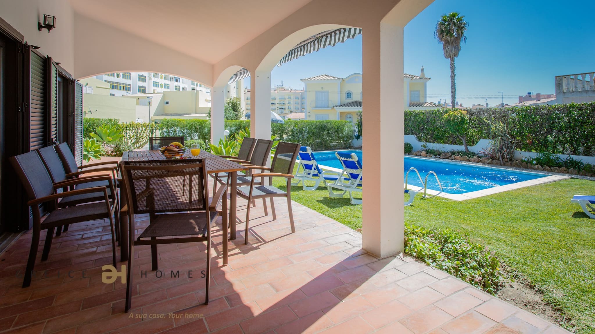 This is the ideal property for your holidays as its location is unique. By staying here, you can enjoy all the benefits of the location just by walking or taking a small drive. Take the kids to the beach in a walking distance, go and buy fresh fish at the fish market in Quarteira, also not far from the villa, you can arrive at the property and cook this fish on the BBQ and have lunch enjoying a great view of the pool. During the afternoon you can take a swimm or relax on the sunloungers provided. At night, Vilamoura comes alive, this is when you can have a drink with friends or go for a walk to see the shops and the boats.