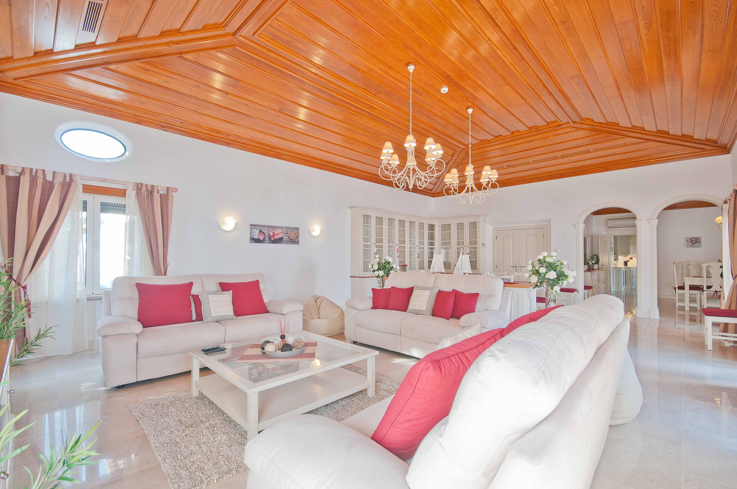 All five bedrooms are en-suite, featuring air conditioning, flat-screen TV, and private bathrooms. The master suites upstairs boast sea views and access to private terraces, perfect for enjoying the Algarve sunset. The modern kitchen is fully equipped with high-end appliances, while the spacious living room invites relaxation and social gatherings.