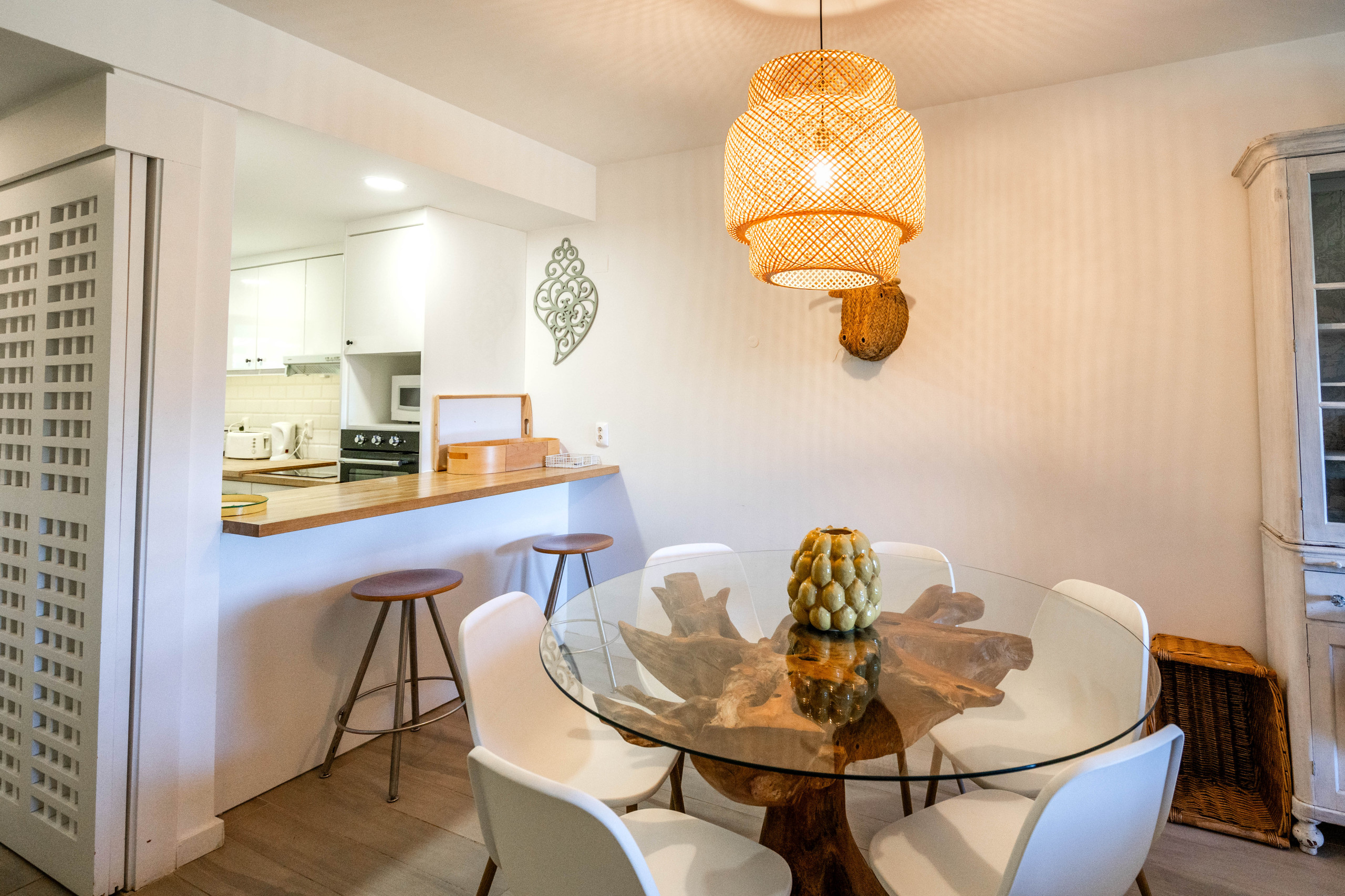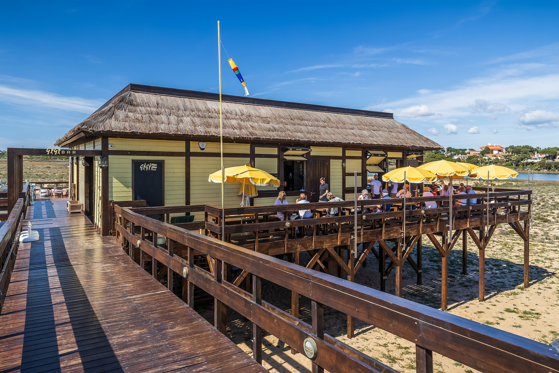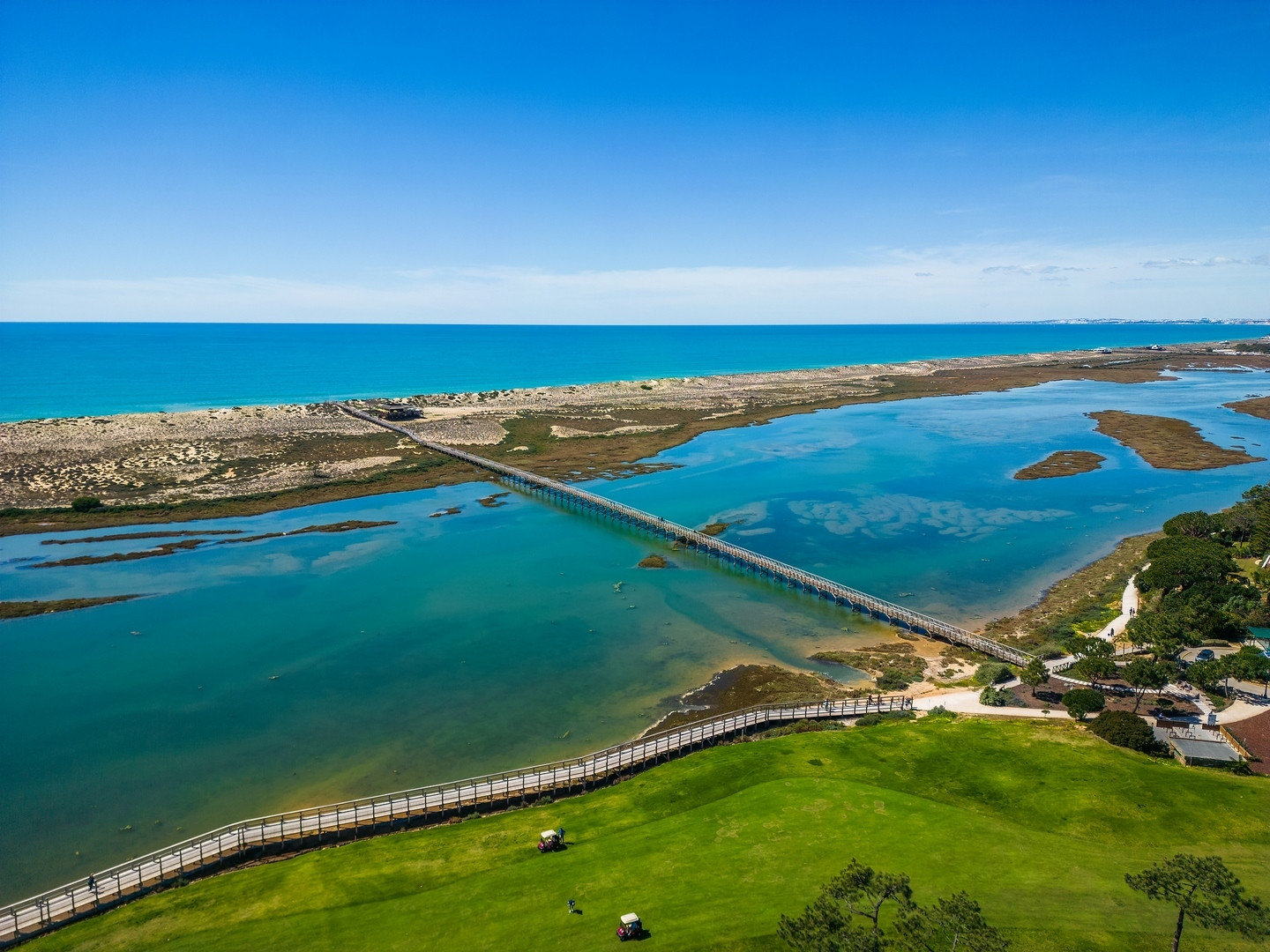 The villa in Almancil has 2 bedrooms and has capacity for 6 people. The villa is cozy, is very light, and is 134 m². It has views of the lake and the garden. The property is located 0 m from the international airport, 100 m from Victory Village pool Café coffee shop, 500 m from The Shake the restaurant, 1 km from Campo de Golfe Quinta do Lago South golf course, 2 km from Praia da Quinta do Lago sand beach, 2 km from Campo de Golfe Quinta do Lago North golf course, 6 km from Pingo Doce – Almancil supermarket, 13 km from AquaShow Park (Quarteira) water park, 17 km from Aeroporto de Faro airport, 18 km from Hospital de Faro (Centro Hospitalar Universitário do Algarve) hospital, 32 km from Zoomarine (Albufeira) water park. The house is situated in a family-friendly neighborhood in a residential complex. The accommodation is equipped with the following items: garden, garden furniture, washing machine, internet (Wi-Fi), hair dryer, balcony, central heating, air-conditioned, communal+children's swimming pool, open-air parking near the building, mosquito net/nets in the bedroom, 1 TV. In the hotplate of glass ceramics open plan kitchen, refrigerator, microwave, oven, freezer, dishwasher, dishes/cutlery, kitchen utensils, coffee machine, toaster and kettle are provided.