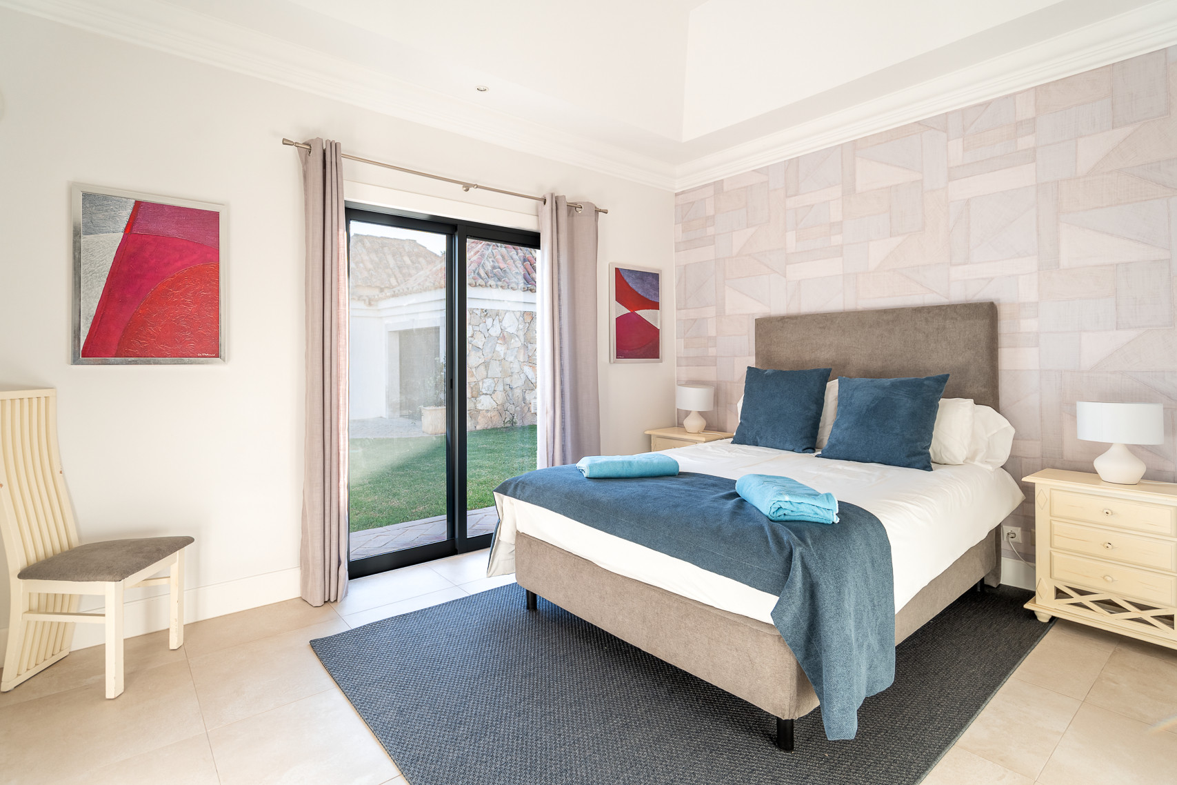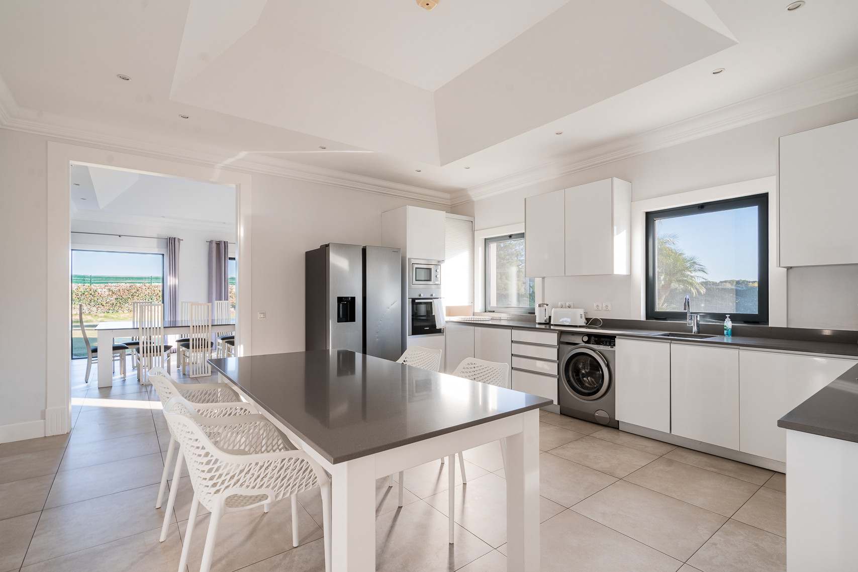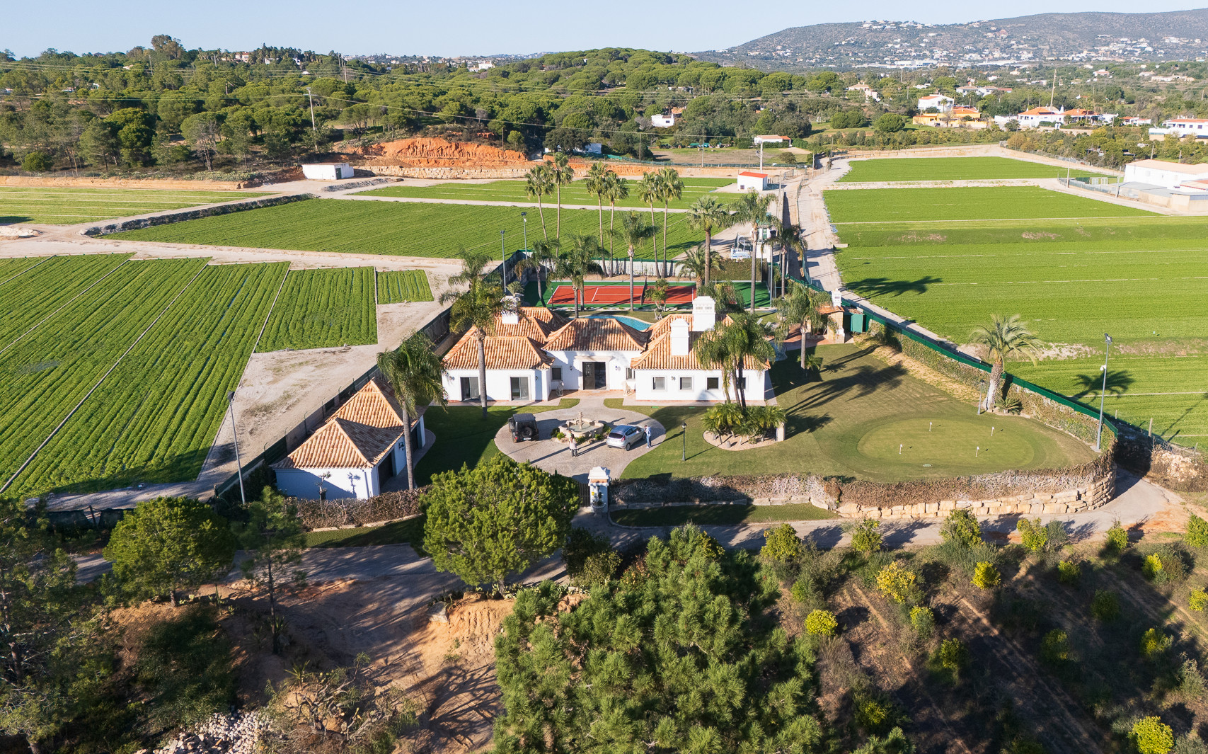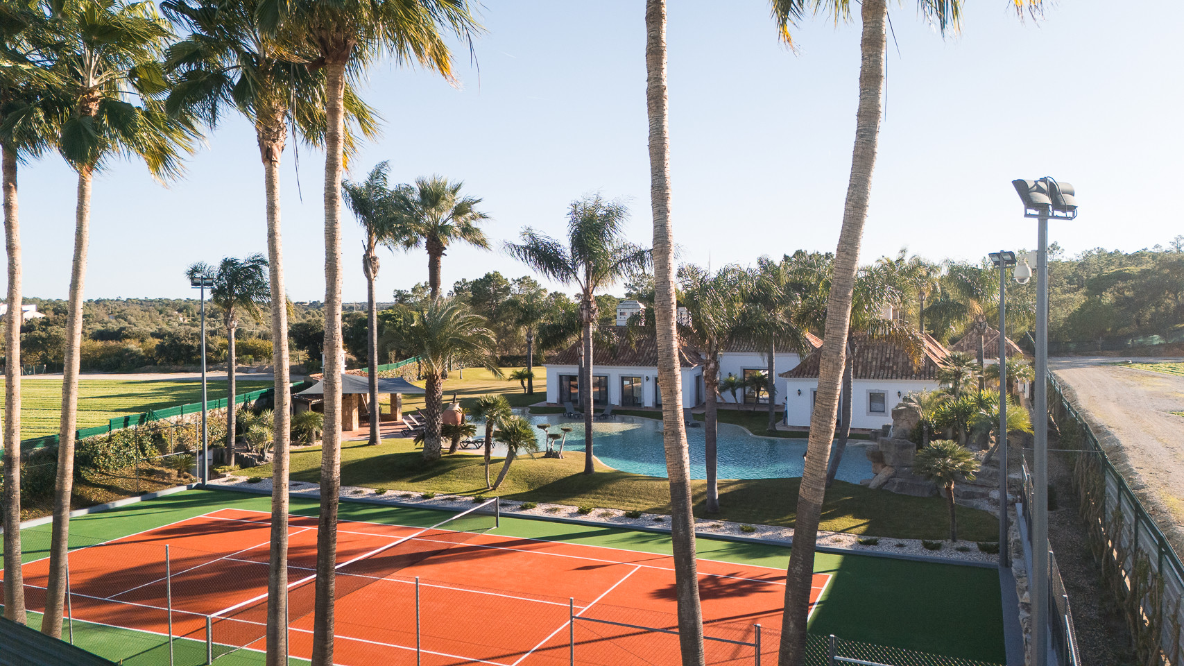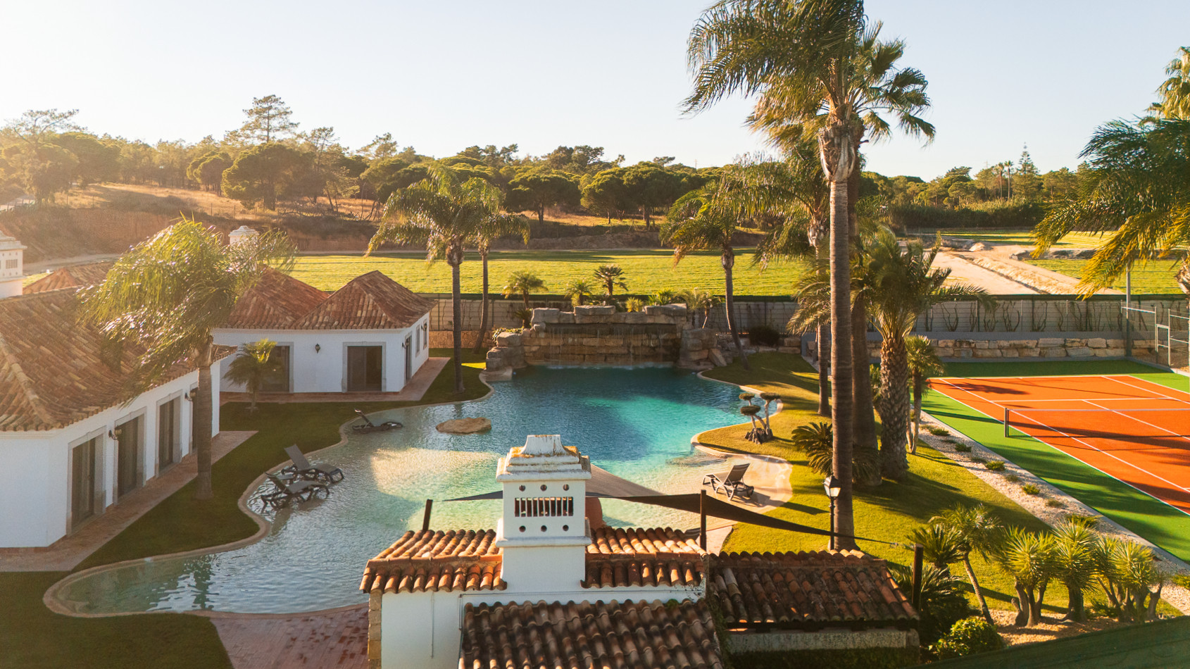 The villa in Quinta do Lago has 4 bedrooms and has capacity for 10 people. The villa is 4,000 m². The accommodation is equipped with the following items: garden, garden furniture, fenced garden, terrace, washing machine, dryer, barbecue, fireplace, iron, internet (Wi-Fi), hair dryer, balcony, tennis court, alarm, central heating, air-conditioned, private swimming pool, private heated swimming pool, open-air parking the same building, TV, satellite tv (Languages: Spanish, English). In the hotplate of glass ceramics open plan kitchen, refrigerator, microwave, oven, freezer, dishwasher, dishes/cutlery, kitchen utensils, coffee machine, frying pan and toaster are provided.