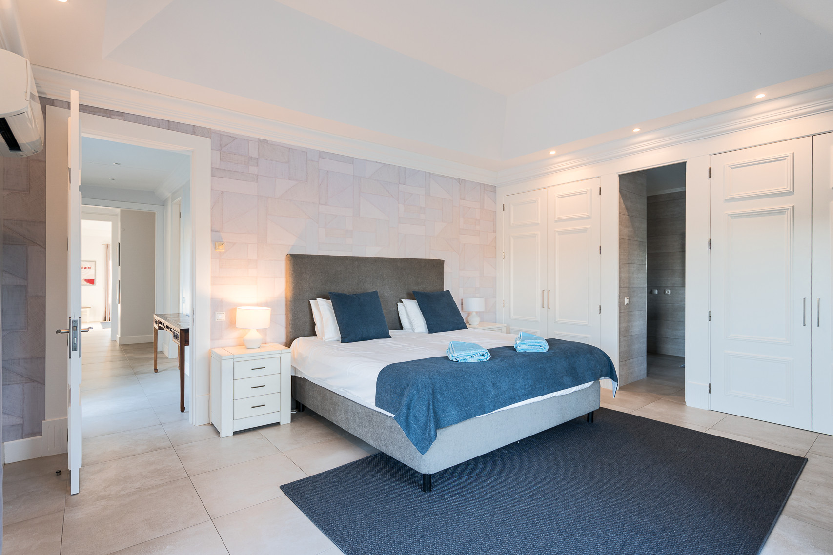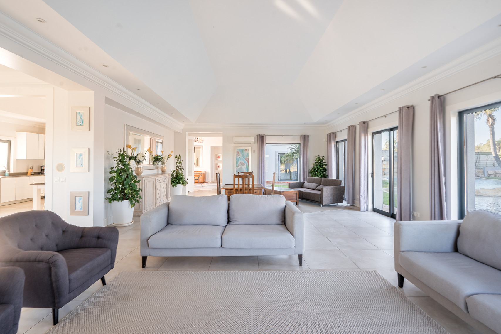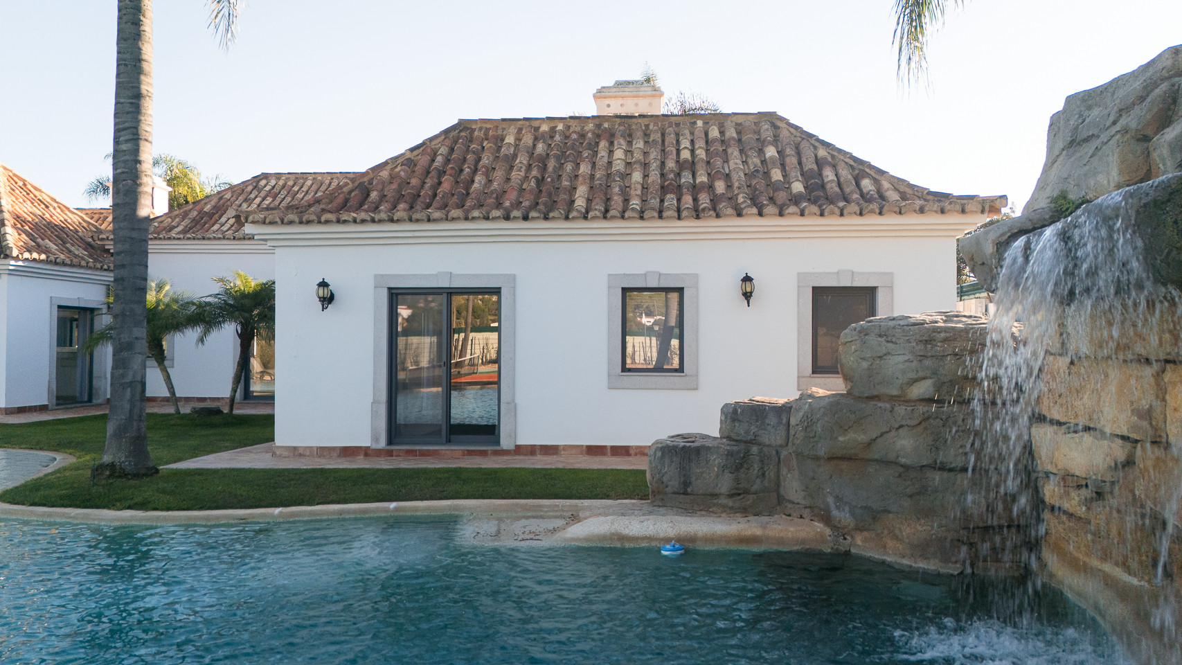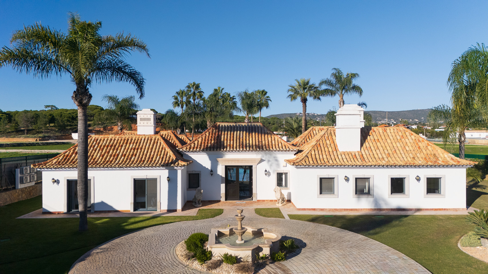The villa in Quinta do Lago has 4 bedrooms and has capacity for 10 people. The villa is 4,000 m². The accommodation is equipped with the following items: garden, garden furniture, fenced garden, terrace, washing machine, dryer, barbecue, fireplace, iron, internet (Wi-Fi), hair dryer, balcony, tennis court, alarm, central heating, air-conditioned, private swimming pool, private heated swimming pool, open-air parking the same building, TV, satellite tv (Languages: Spanish, English). In the hotplate of glass ceramics open plan kitchen, refrigerator, microwave, oven, freezer, dishwasher, dishes/cutlery, kitchen utensils, coffee machine, frying pan and toaster are provided.