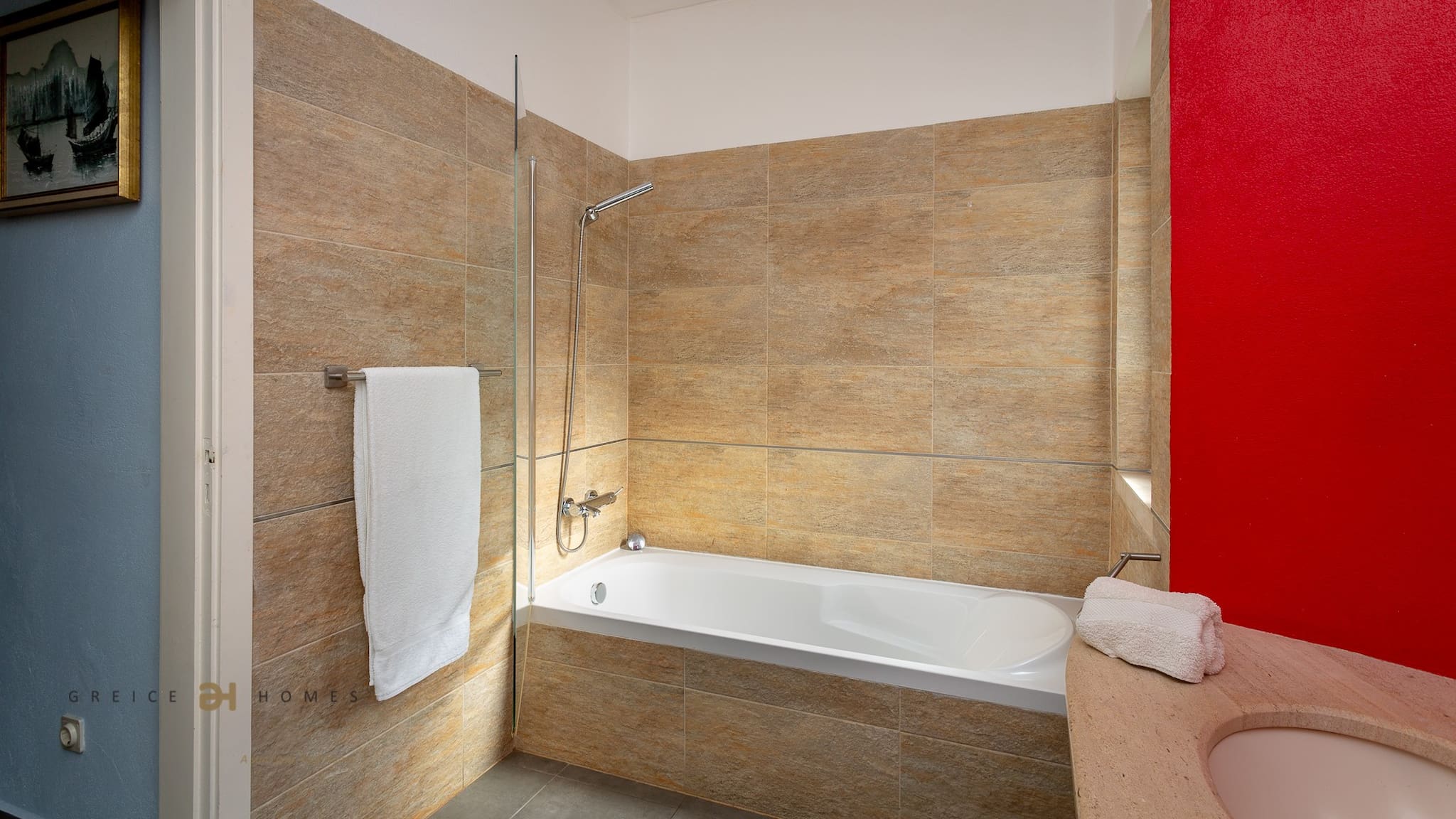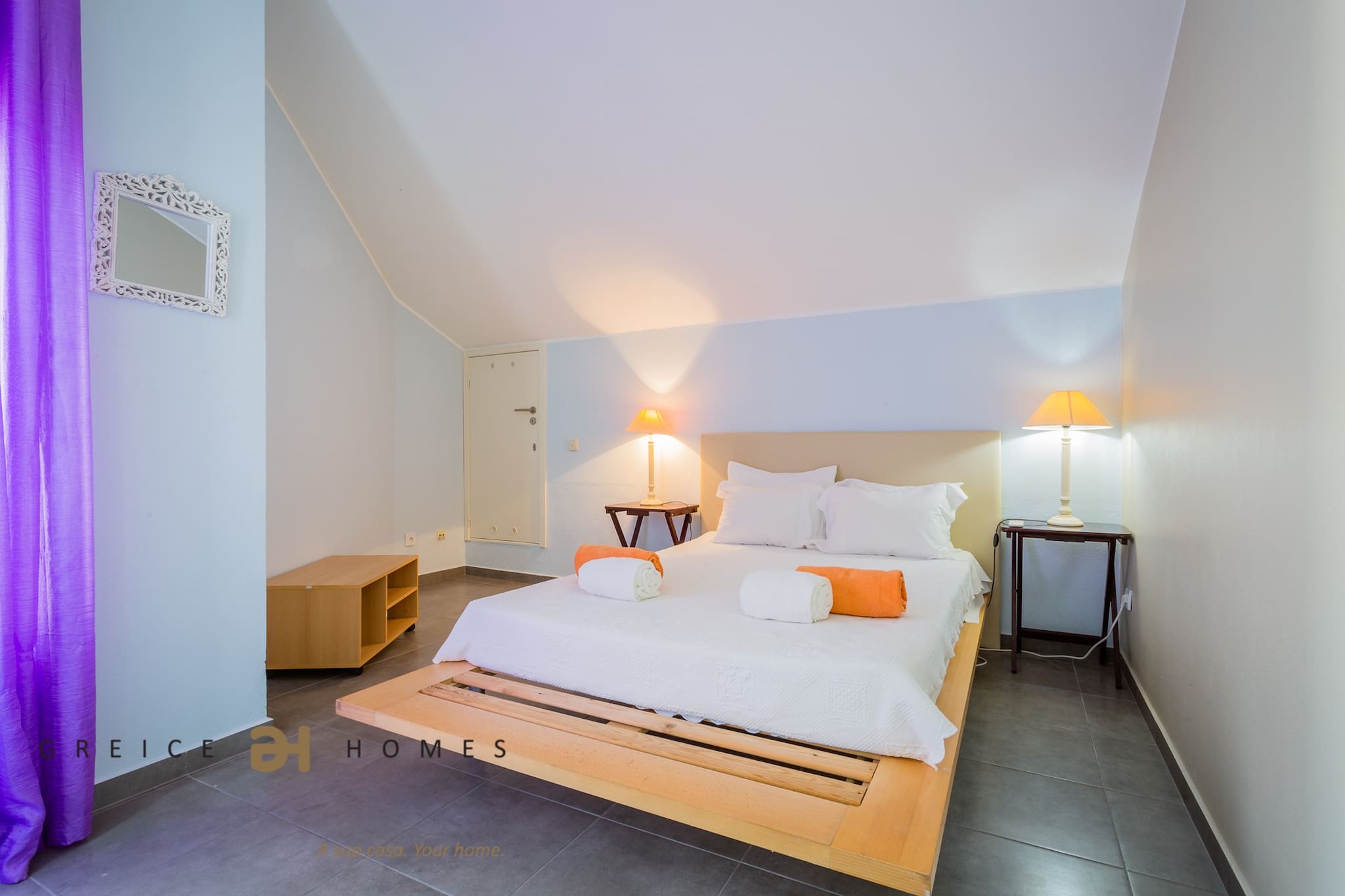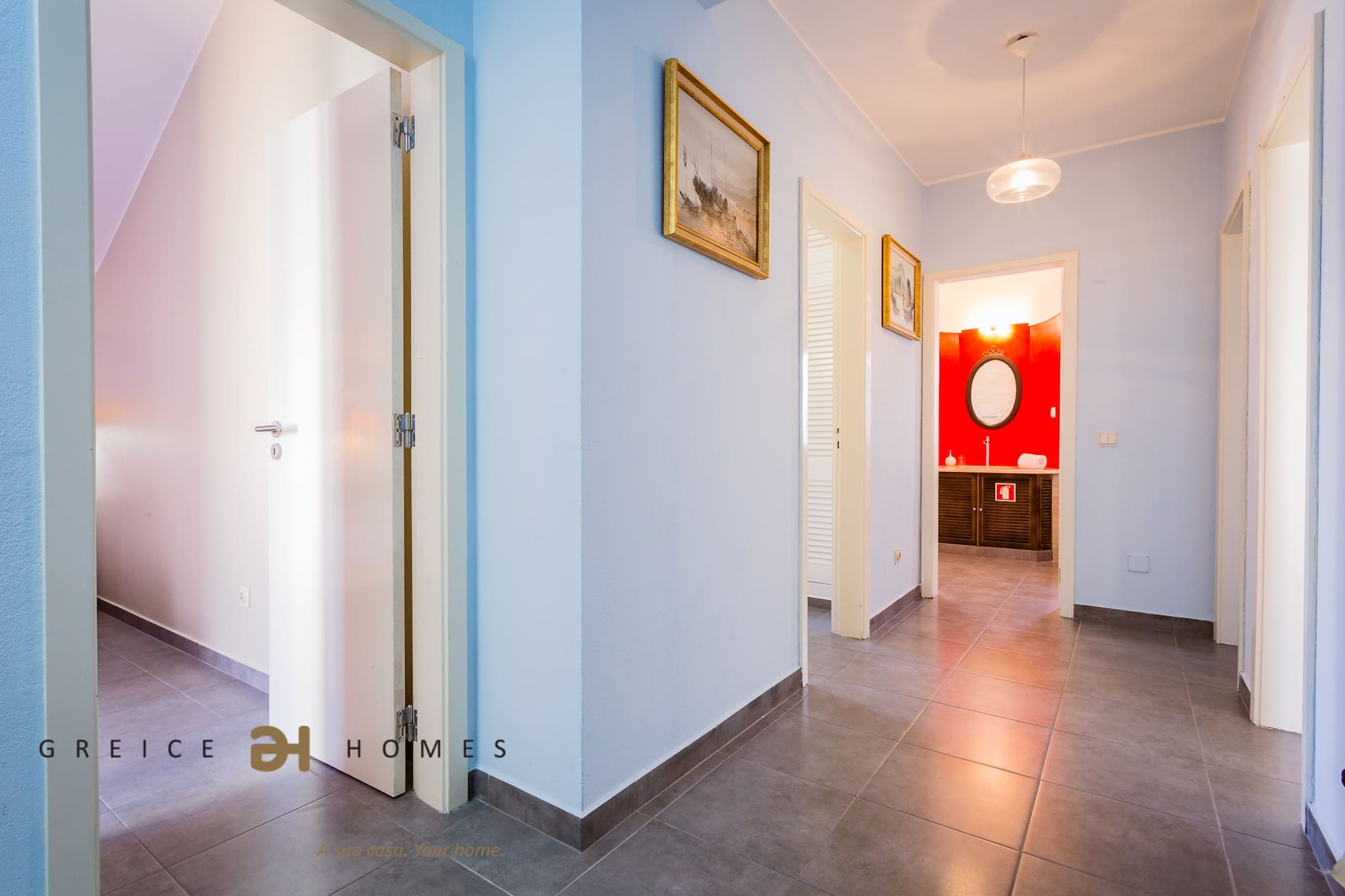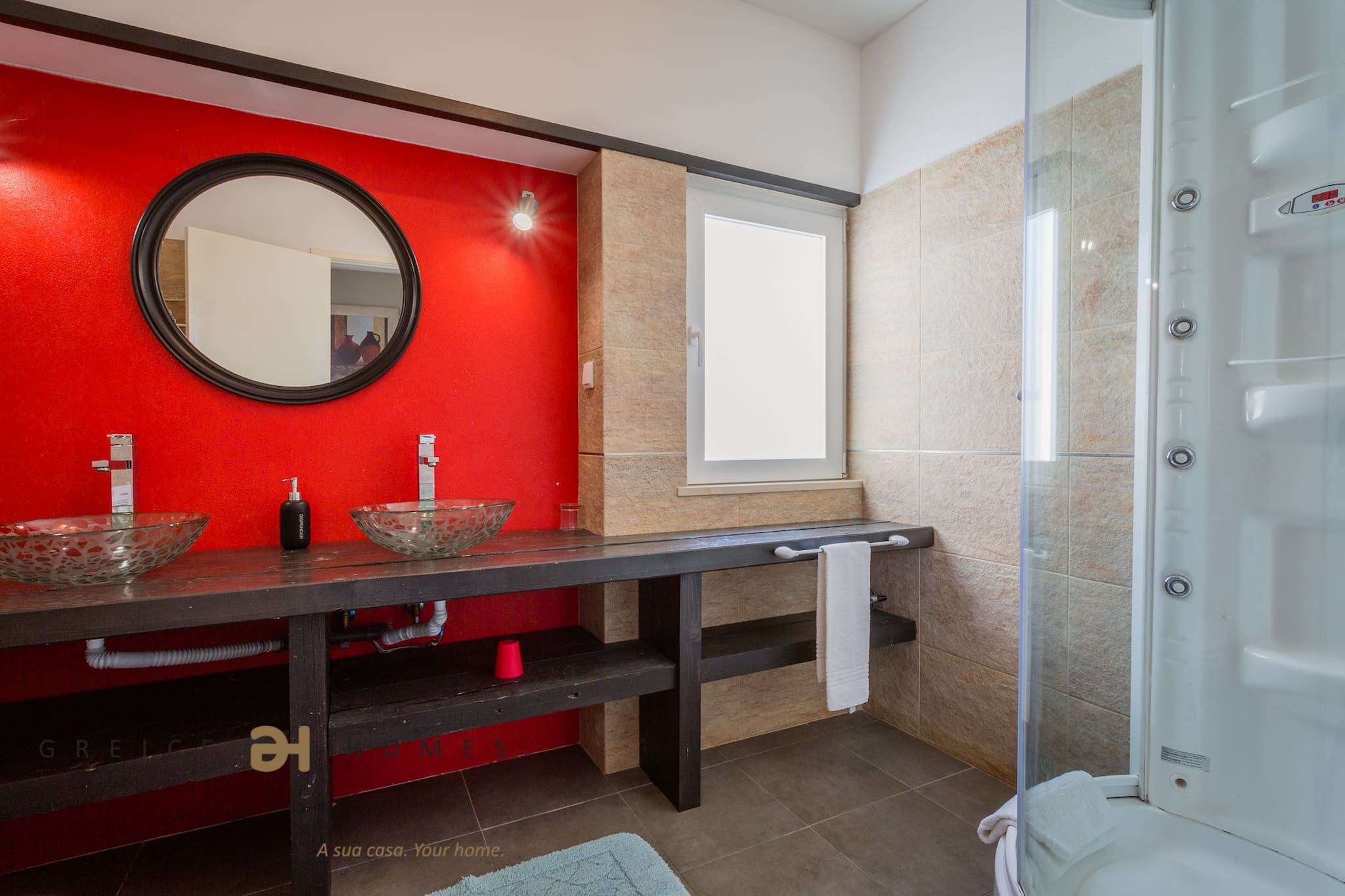 One of the double bedrooms is en-suite with a hydro massage shower cabin and has a balcony overlooking the pool.