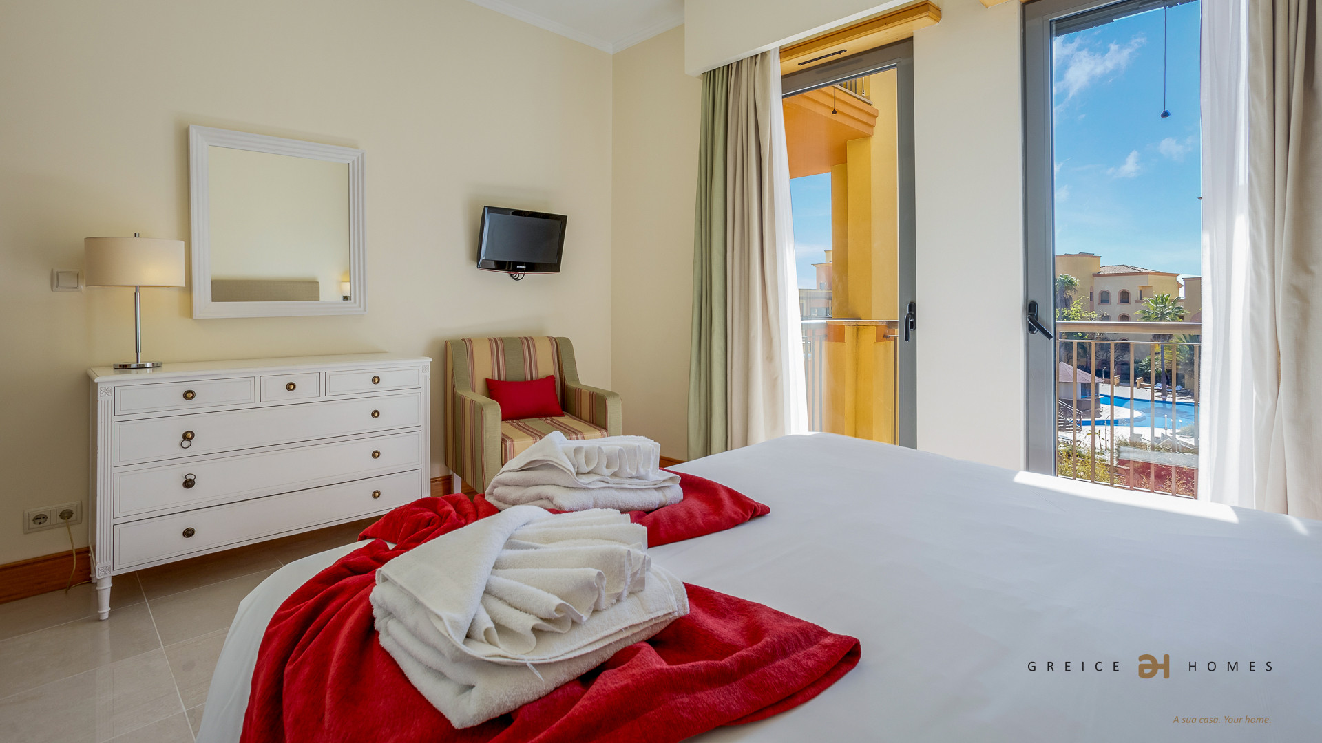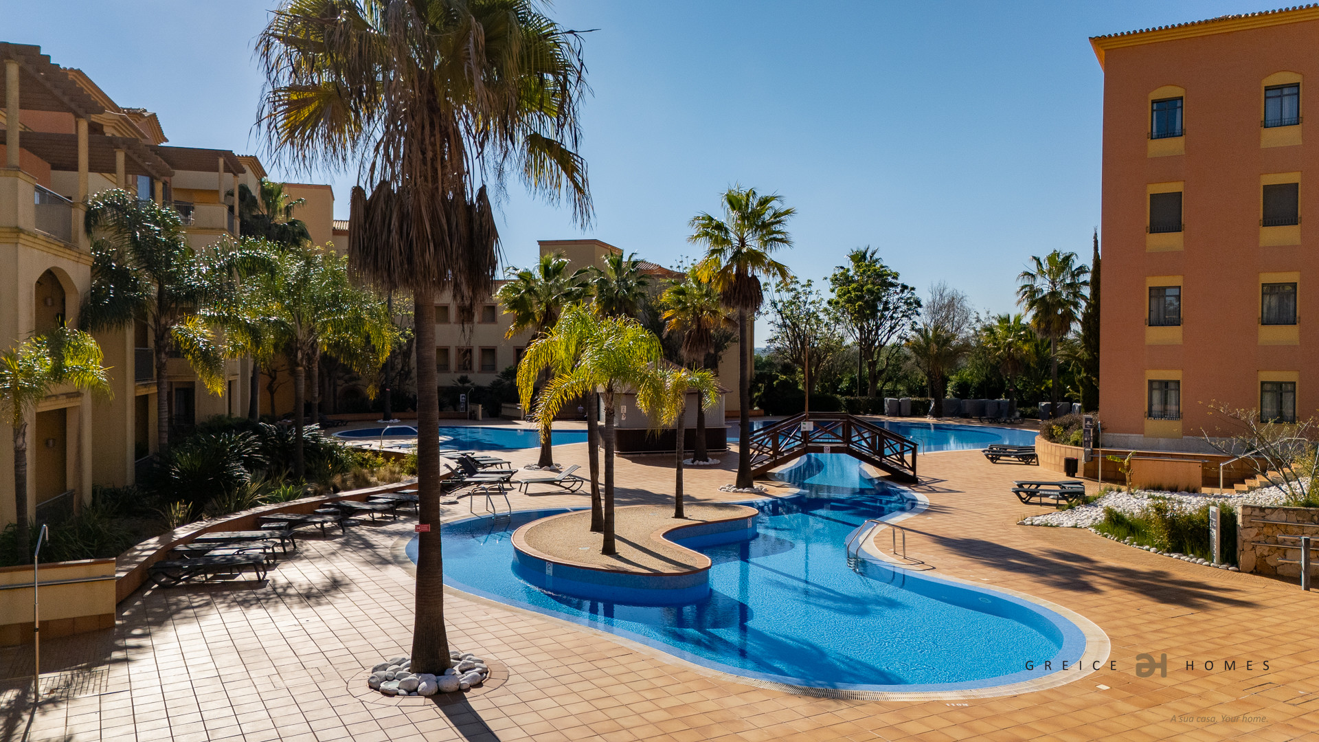 Luxueux T3 en suite, situé dans une copropriété avec piscine et aire de jeux pour enfants, entouré de 3 parcours de golf célèbres de Vilamoura : Victoria Golf Club, Laguna et Millennium golf.