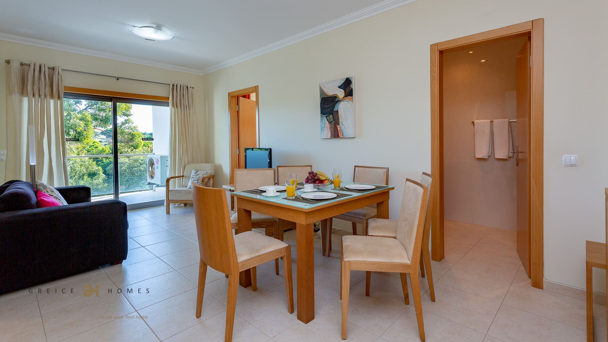 Comprenant 2 chambres dont une en suite avec baignoire, grand salon, cuisine entièrement équipée avec lave-linge, micro-ondes, four et lave-vaisselle, grand salon et un balcon spectaculaire avec vue sur la nature et avec mobilier extérieur pour profiter de vos moments de repos et d'été. repas, en profitant de la brise de l'Algarve.