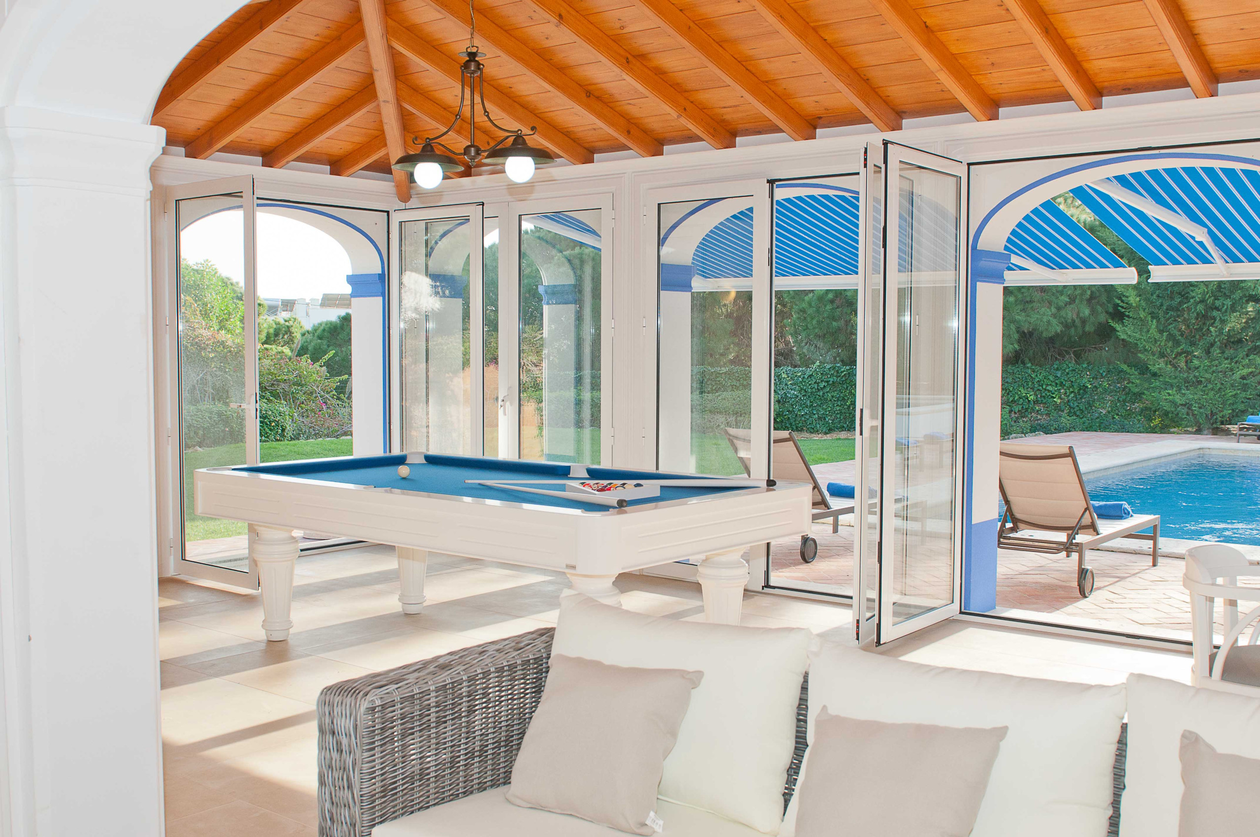 Détendez-vous dans la piscine privée chauffée (12x5 m) ou dans la piscine séparée pour enfants – toutes deux équipées d’une option de clôture de sécurité pour une tranquillité maximale. Les espaces extérieurs comprennent de vastes terrasses ombragées, un barbecue, un espace lounge, un baby-foot et une salle de jeux extérieure avec table de billard.