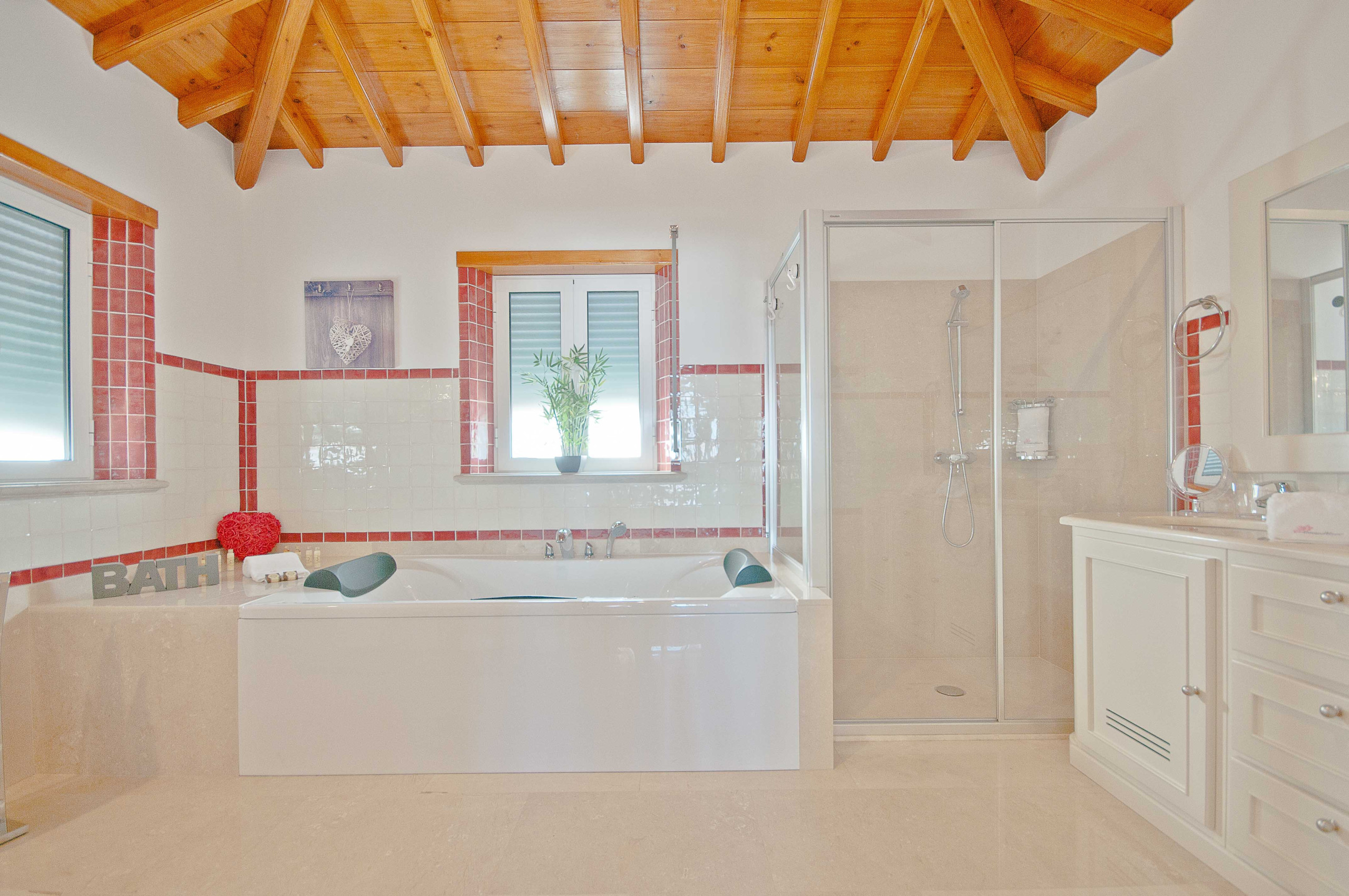 Les cinq chambres sont toutes en suite, avec climatisation, télévision à écran plat et salle de bain privative. Les suites principales à l’étage offrent une vue sur la mer et un accès à des terrasses privées, idéales pour admirer le coucher du soleil de l’Algarve. La cuisine moderne est entièrement équipée avec des appareils haut de gamme, tandis que le vaste salon invite à la détente et aux moments de convivialité.